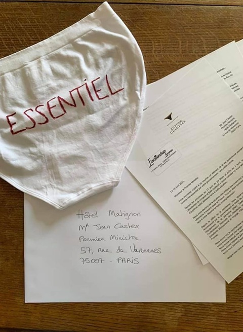 Các nhà hoạt động đă chia sẻ trên mạng những bức h́nh đồ lót khác nhau nhét bên trong một phong b́ được gửi cho thủ tướng Pháp, kèm theo lá thư giải thích sự bất b́nh của họ.