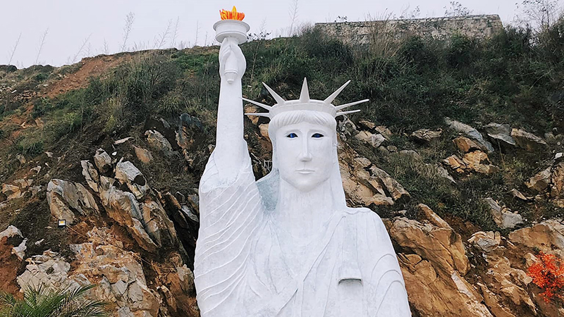 Ngoài bức tượng 'Nữ thần Tự do' bán thân, tại đây còn có nhiều hạng mục công trình mô phỏng những địa điểm du lịch nổi tiếng chẳng hạn như tháp Eiffel (cao 9m), hình ảnh 4 vị Tổng thống Mỹ (phiên bản núi Rushmore), mô hình tháp nghiêng Pisa (cao 8m), dòng chữ biểu tượng 'Hollywood', mô hình hai bàn tay đang trong quá trình xây dựng (cao 2m)...