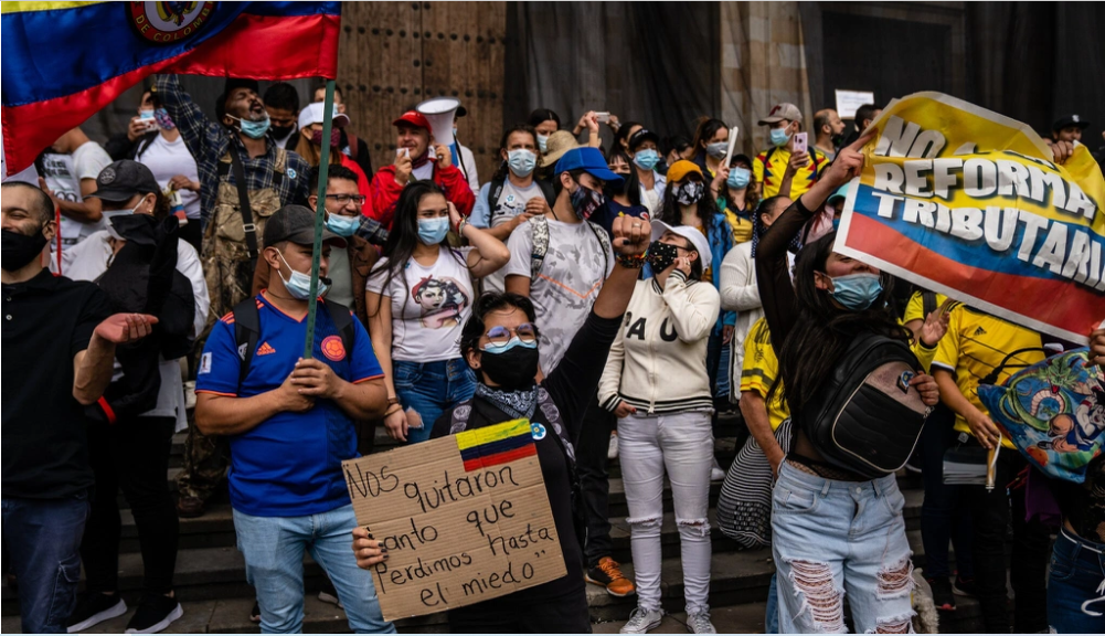 Người biểu tình ở Bogotá vào ngày 28/4. Ảnh: New York Times.