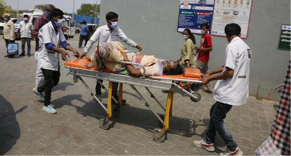 Số ca mắc Covid-19 gia tăng mạnh ở Ấn Độ kể từ tháng 2. Nguyên nhân được cho là do các biến thể dễ lây lan hơn của virus cũng như việc đám đông tụ tập tại các lễ hội tôn giáo Hindu và các cuộc biểu tình trước đợt bầu cử cấp bang. Trong ảnh, bệnh nhân nhập viện tại bệnh viện Covid-19 ở Ahmedabad. Ảnh: AP.