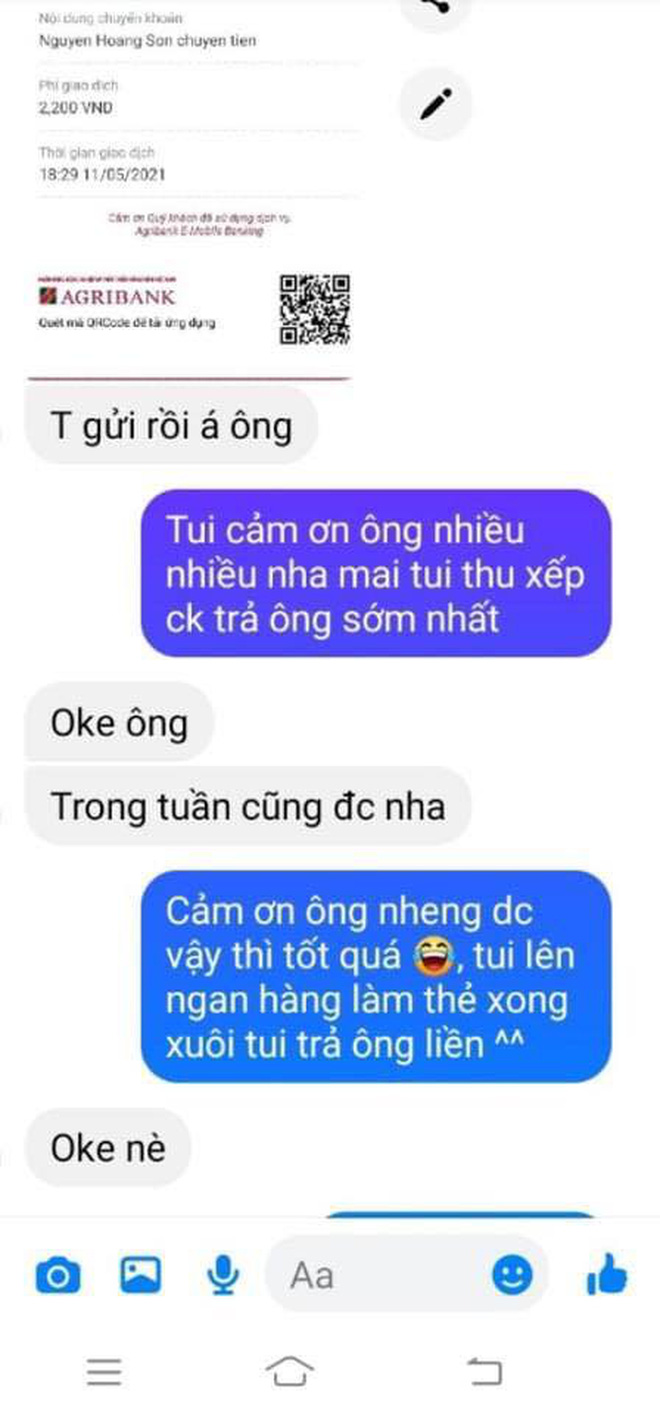 - Dạ em thấy anh hỏi trên facebook nên em nhắn hỏi", đây chính là đoạn mở đầu của câu chuyện. Người kia chủ động hỏi han rồi cho vay vì lí do "thấy đáng tin".