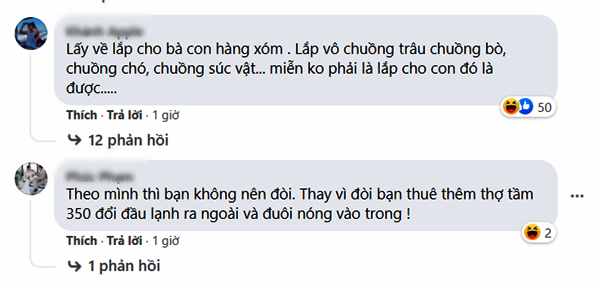 Quá tức giận vì bị phũ, chàng trai chủ động nhắn đòi điều hòa. Hành động này này sau khi đăng tải đã thu hút sự chú ý của đông đảo cư dân mạng. Đa số mọi người đều cho rằng việc chàng trai đòi lại điều hòa là hoàn toàn hợp lý. Phía dưới bài đăng là hàng ngàn bình luận quan tâm, chia sẻ.
