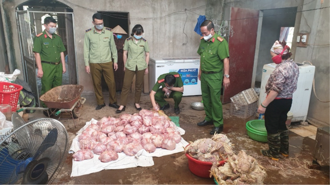 Tại thời điểm làm việc chủ số hàng hoá trên không xuất trình được bất kỳ giấy tờ gì liên quan đến nguồn gốc, xuất xứ của số gà trên và hoạt động giết mổ gia cầm của gia đình ông chưa được cấp có thẩm quyền cấp phép.