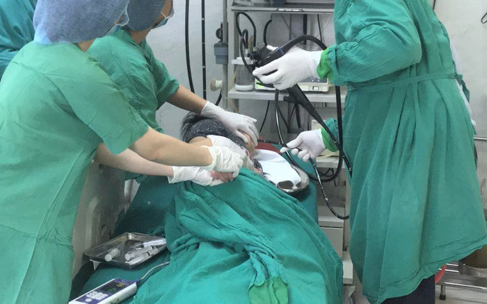 Ê-kíp quyết định gây mê, dùng ống soi gắp đồng xu đồ chơi ra khỏi thực quản cho bé. Rất may, sau phẫu thuật lòng thực quản của bé chỉ tổn thương nhẹ niêm mạc, có thể nhanh chóng bình phục và xuất viện.