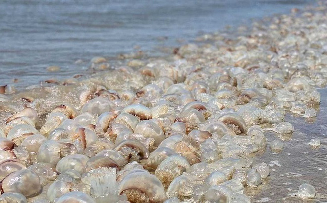 Trên mạng xã hội ở Mỹ đang lan truyền hình ảnh hàng ngàn con vật tròn xoe kỳ dị, không biết vì lý do gì mà chúng trôi dạt, tấp vào bờ biển.