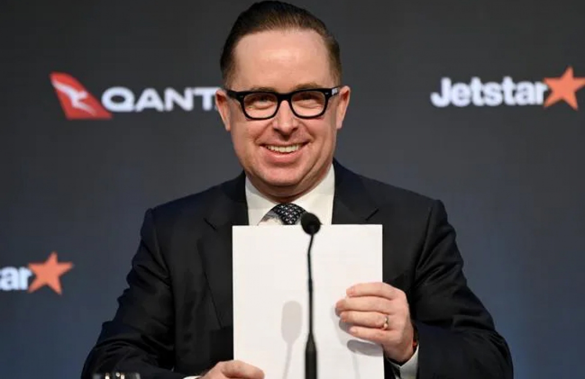 Ông Alan Joyce, Tổng giám đốc điều hành hãng hàng không Qantas công bố chương trình quà tặng cho hành khách tiêm vaccine ngừa Covid-19. Nguồn: News Corp Australia.