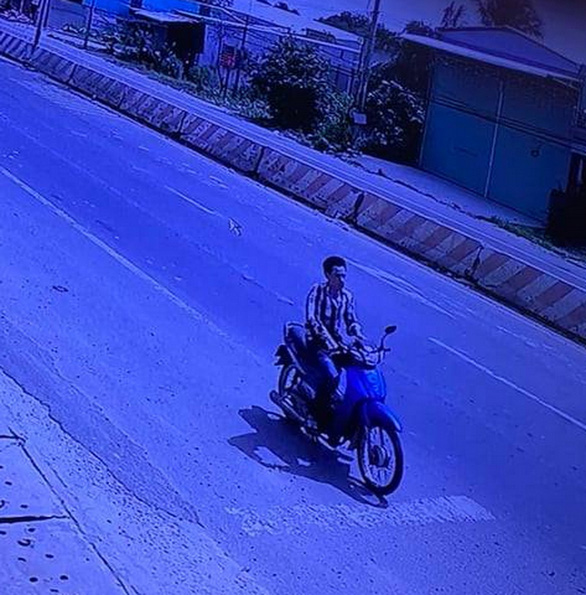 Sau khi thay áo mới, Thùa chạy chiếc xe máy vòng vòng huyện Gò Dầu để mọi người thấy với hi vọng đánh lạc hướng điều tra - Ảnh trích xuất từ camera an ninh