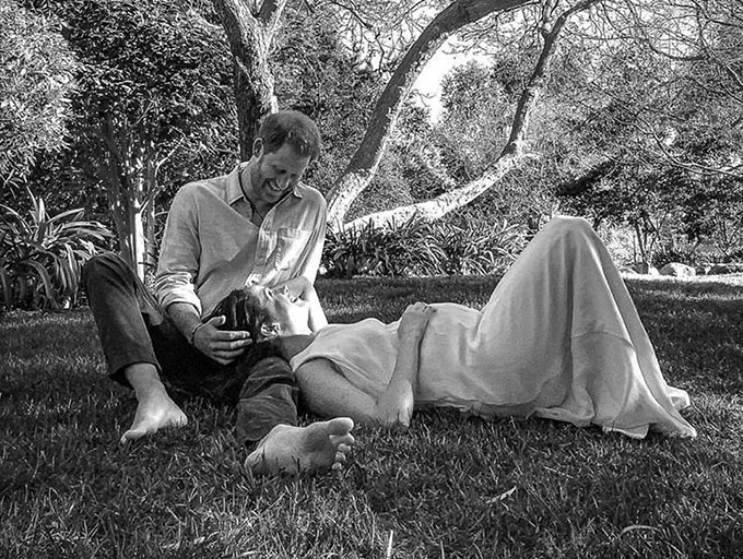 Harry và Meghan trong khu vườn gia đình ở Montecito trong thời gian mang thai con gái Lili. Ảnh: Instagram.