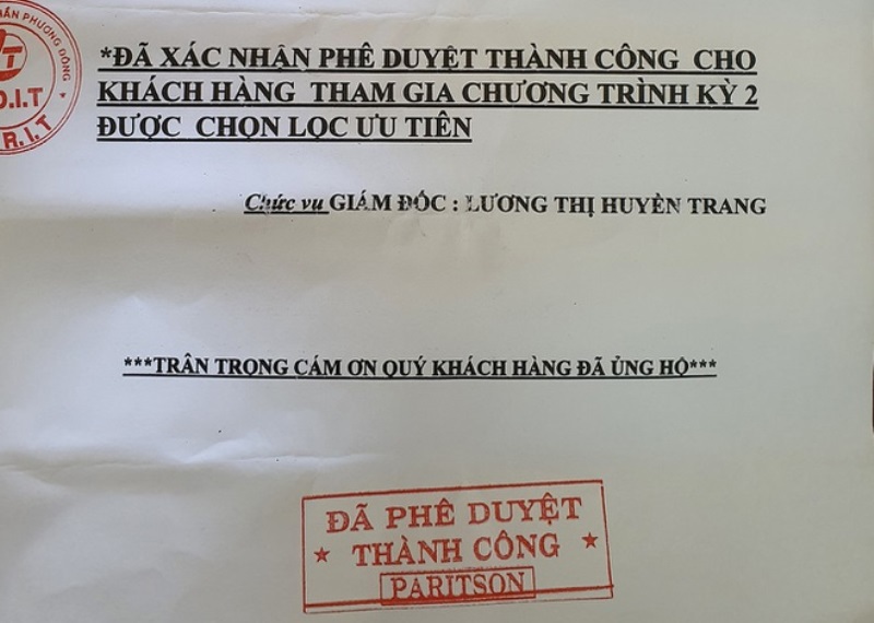 Qua điện thoại, người này thông báo bà Y. được giám đốc chọn là 1 trong 15 khách hàng uy tín nên được hưởng chương trình vay ưu đãi với lãi suất 0%, số tiền vay 50 triệu đồng/khách hàng, không phải thế chấp tài sản.