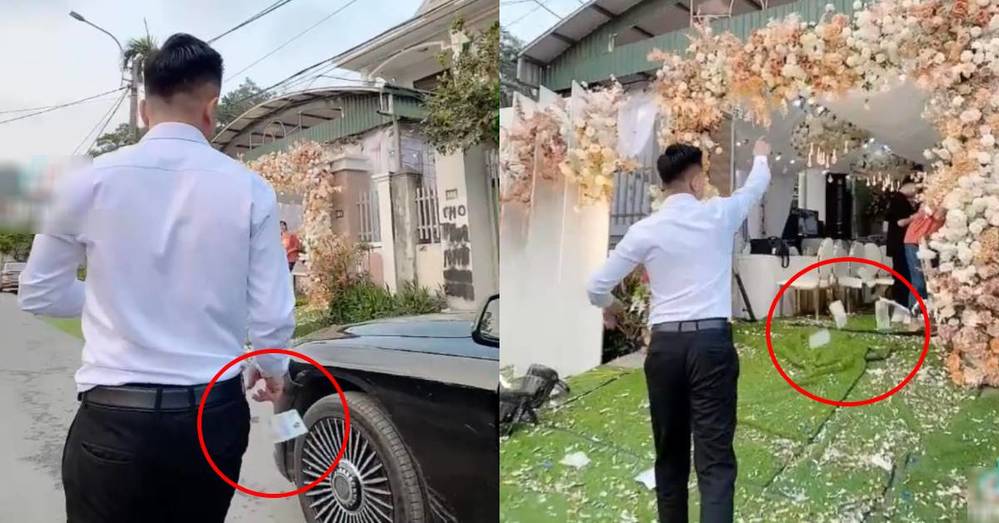 uy nhiên, mục đích đến dự đám cưới của chàng trai này không phải để chung vui với cô dâu chú rể, mà sự thật là rải tiền trước cổng nhằm “dằn mặt” tình cũ.