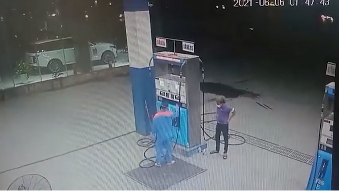 Sau khi nhân viên đổ xong. Anh này không trả tiền mà cầm xăng bỏ chạy. Nhân viên cây xăng lập tức đuổi theo để giữ lại nhưng không thành.