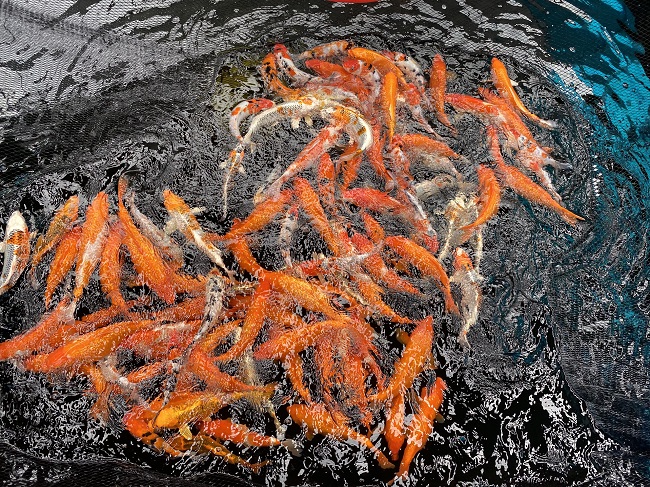 Đến nay, trên diện tích đất hơn 5ha với 13 ao nuôi, anh Quân đang thả nuôi khoảng hơn 20.000 con cá Koi với 3 chủng loại: Cá Koi nhập trực tiếp từ Nhật Bản, cá Koi F1 Nhật Bản và cá Koi Việt Nam.