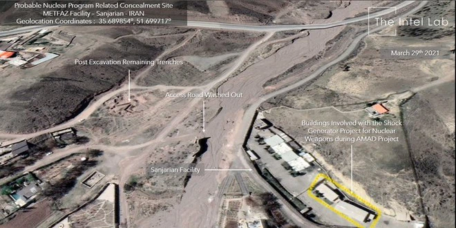 Ảnh vệ tinh được Maxar Technologies ghi lại, Fox News đăng tải và các chú thích của "The Intel Lab" và ISIS cho thấy chúng là các công trình phát triển vũ khí hạt nhân của Iran.