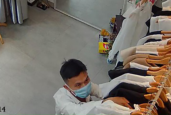 Khi phát hiện một cửa hàng quần áo nữ chỉ có một nhân viên đang đứng bán hàng, Tú giấu dao bầu nhọn trong người rồi bước vào vờ hỏi mua quần áo tặng bạn gái. Chọn được một chân váy, 2 áo sơ mi có giá tổng cộng 900.000 đồng, Tú yêu cầu thanh toán tiền bằng cách chuyển khoản và được chấp nhận. Anh ta sau đó nói sẽ chuyển khoản cho nữ nhân viên 1,5 triệu đồng và lấy lại 600.000 đồng.