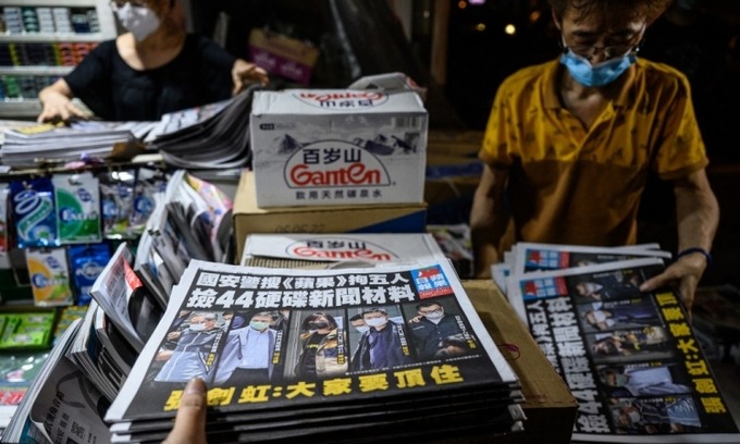 Apple Daily tiếp tục phát hành sau khi tổng biên tập bị bắt, với số bản in tăng 6 lần so với bình thường, nhiều sạp báo nhanh chóng cháy hàng.