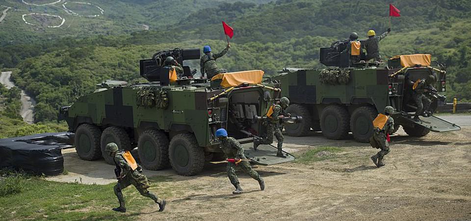 Xe bọc thép của lực lượng phòng vệ Đài Loan trong một cuộc tập trận. Ảnh: Cơ quan Phòng vệ Đài Loan.