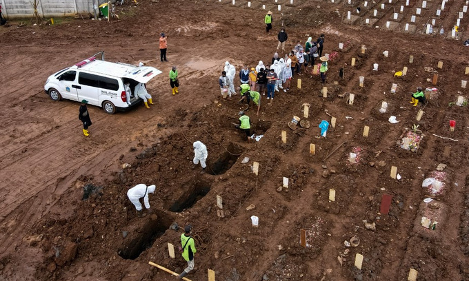 Indonesia hôm nay ghi nhận 14.536 ca nhiễm nCoV mới, mức tăng cao nhất kể từ khi đại dịch bùng phát tại nước này, nâng tổng số ca nhiễm toàn quốc lên hơn 2 triệu, trong đó gần 55.000 người đã chết. Số ca nhiễm và nhập viện tăng vọt, khiến giới chuyên gia cảnh báo Covid-19 có thể bùng phát mạnh và gây khủng hoảng y tế ngoài tầm kiểm soát tại quốc gia với dân số 270 triệu người.