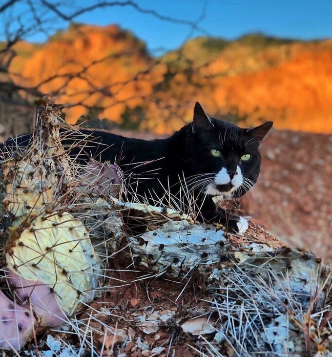 Trên đường đi, Simmons chụp ảnh con mèo và đăng Instagram, từ đó Miến Điện bắt đầu nổi tiếng. Trong suốt cuộc đời mình, Miến Điện đã ghé qua hơn 30 tiểu bang tại Mỹ. Hiện tại, con mèo đã ở tuổi già nên những bức ảnh về những chuyến đi của nó ngày càng ít xuất hiện trên mạng xã hội. Ảnh: @burmaadventurecat/Instagram