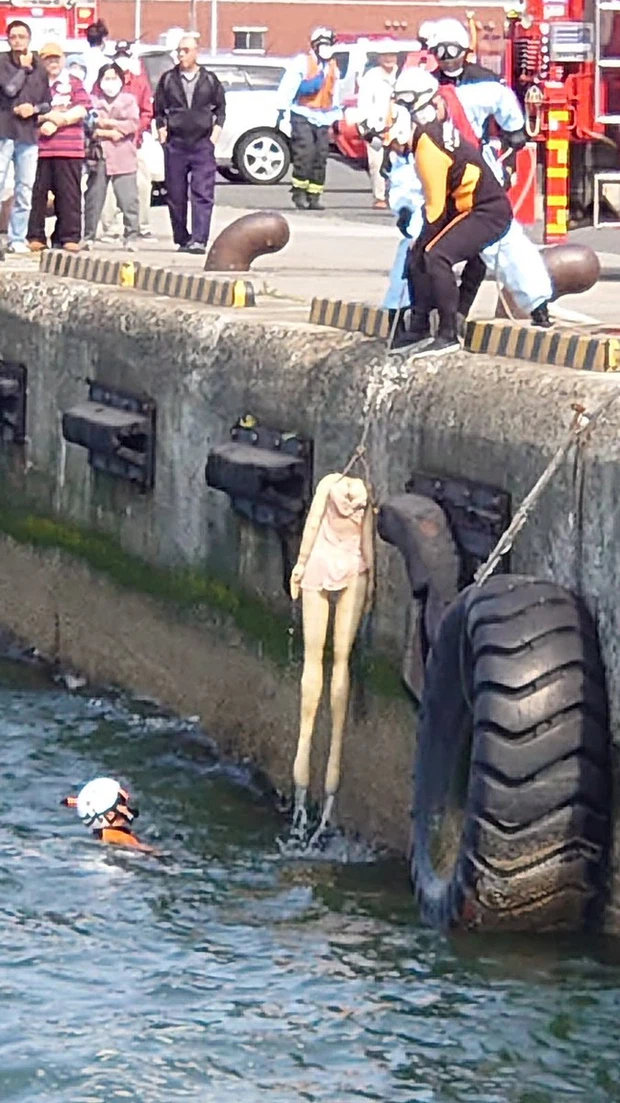 Hình ảnh cho thấy đám đông vây kín, bàng hoàng chứng kiến và theo dõi sự việc khủng khiếp. Tuy nhiên, khi cảnh sát vớt được nạn nhân từ dưới nước lên, ai nấy đều không thể chưng hửng hơn khi nhận ra đó không phải người mà là một con búp bê tình dục.