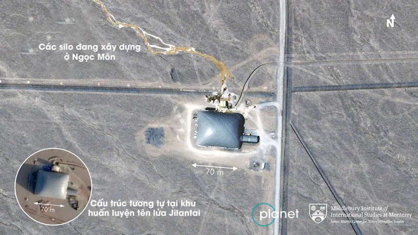 Hình ảnh vệ tinh thương mại được các chuyên gia tại Trung tâm nghiên cứu không phổ biến hạt nhân James Martin, trụ sở tại California, Mỹ phân tích cho thấy công việc xây dựng các giếng phóng tên lửa (silo) đang được tiến hành tại nhiều địa điểm trên sa mạc ở tỉnh Cam Túc, theo Washington Post.