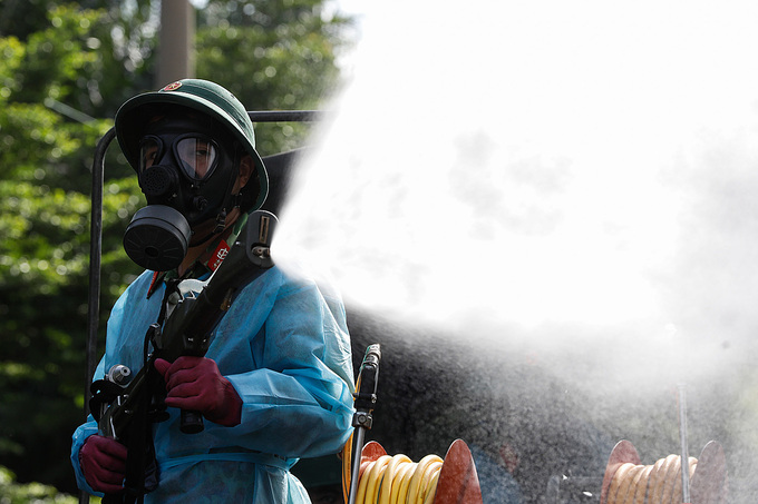 Lực lượng chức năng đang phun khử khuẩn tại chợ Bình Tân sau khi phát nhiều các ca mắc mới.