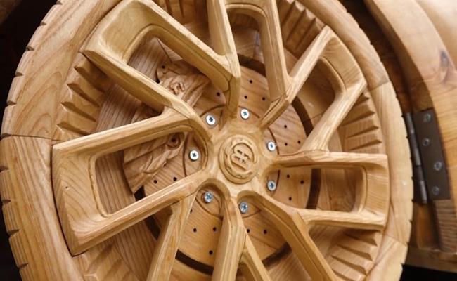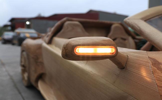 Ngoài hệ động lực và hệ thống đèn LED, phần còn lại của mô hình này đã được làm hoàn toàn từ gỗ sồi (từ khung xe tới thân vỏ và thậm chí cả bánh). Do đó, trọng lượng xe lên tới 350kg.