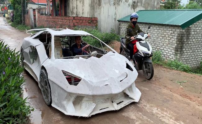 Sau mô tô, những anh chàng này tiếp tục nghiên cứu và chế tạo ra chiếc ô tô đầu tiên – Lamborghini Aventador với chi phí chỉ khoảng 2 triệu đồng. Họ sử dụng hai chiếc xe đạp, một số khung gỗ, kim loại và số lượng lớn bìa cát-tông.