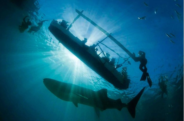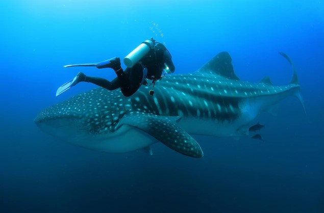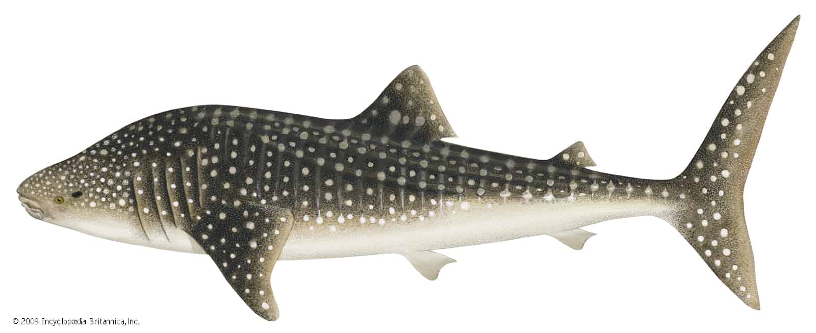 Vây lưng trước của cá mập voi lớn hơn vây lưng sau. Ảnh: Britannica