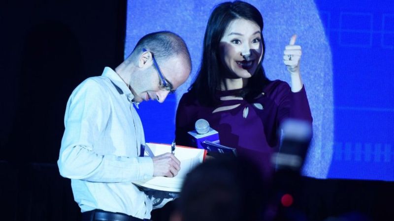 Tác giả Israel, ông Yuval Noah Harari giảng bài về trí tuệ nhân tạo ở Hàng Châu, TQ, năm 2017. Trung Quốc mời nhiều 'bộ óc lỗi lạc' đến chia sẻ ý tưởng về công nghệ cao nhưng chính quyền vẫn kiểm duyệt gắt gao thảo luận chính trị