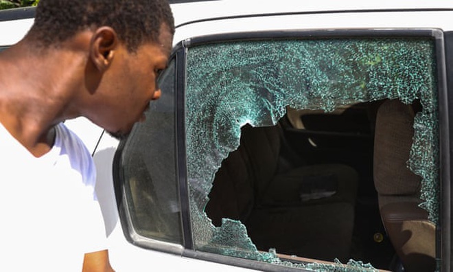 Một chiếc ô tô bị bắn vỡ cửa kính bên ngoài nhà riêng của Tổng thống Moise (Ảnh: Getty).