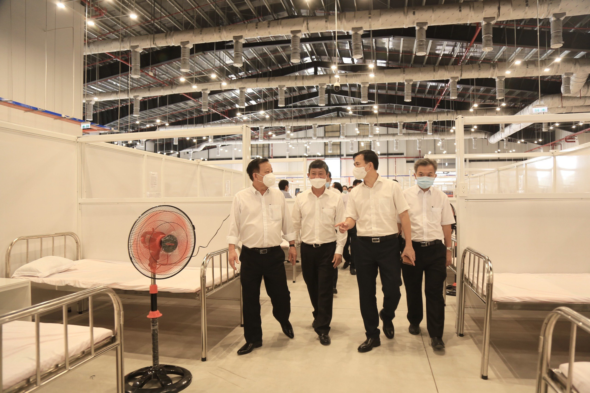 Lãnh đạo tỉnh Bình Dương đi kiểm tra bệnh viện dã chiến có quy mô 1.500 giường. (Ảnh: BTG Bình Dương)