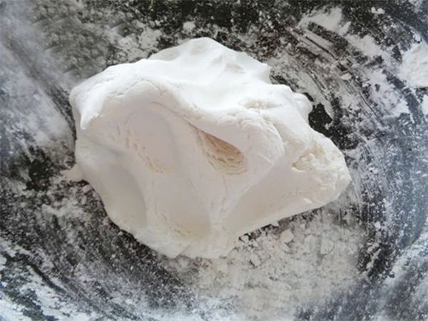 - Khi bột còn nóng thì đổ 35g bột năng vào khối bột gạo. Đeo bao tay và nhồi thật kỹ khối bột. Nhồi được khoảng 10 phút thì để bột nghỉ 30 phút. Sau đó lại tiếp tục nhồi bột lần 2. Nhồi sao cho bột càng dẻo thì sợi bún càng mềm ngon.