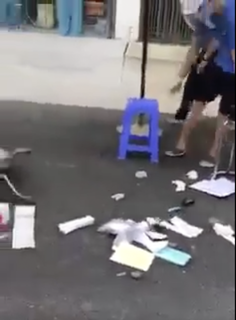 Lực lượng của tổ đặt một bàn tiếp nhận mẫu, một cây dù lớn dưới lòng đường phía trước nhà ông N.T.Q. để cản gió. Sau đó, ông Q. về và đạp đổ bàn như đoạn clip ghi lại.