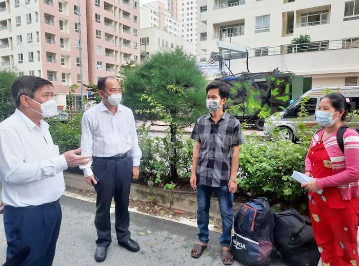 Chiều 27/7, Chủ tịch UBND TPHCM Nguyễn Thành Phong đã đến thăm cán bộ, bác sĩ, bệnh nhân đang điều trị tại Bệnh viện dã chiến số 6, thuộc khu tái định cư Thủ Thiêm (phường An Khánh, TP Thủ Đức).
