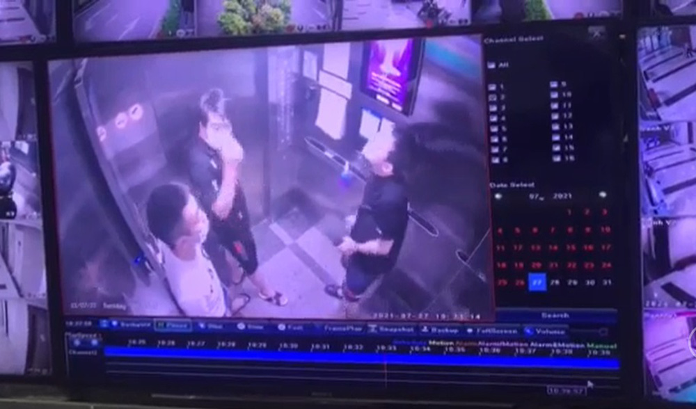 "Sau khi check camera có trong thang máy, tôi đã nắm rõ toàn bộ sự việc. 10h34 phút sáng ngày 27/7, ba người đàn ông đứng trong thang máy. Trong đó, 2 người đeo khẩu trang còn 1 người không đeo. Người không đeo khẩu trang nhổ nước bọt xuống sàn thang máy và dùng một chiếc khẩu trang lau miệng. Sau đó, người này treo tại chai nước rửa tay dành cho cư dân tòa nhà và bỏ đi", ông Cường cho biết.