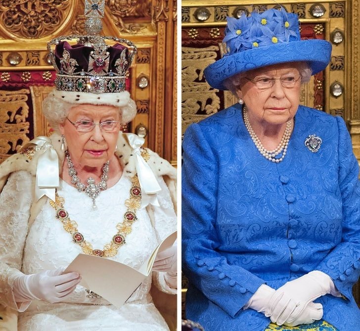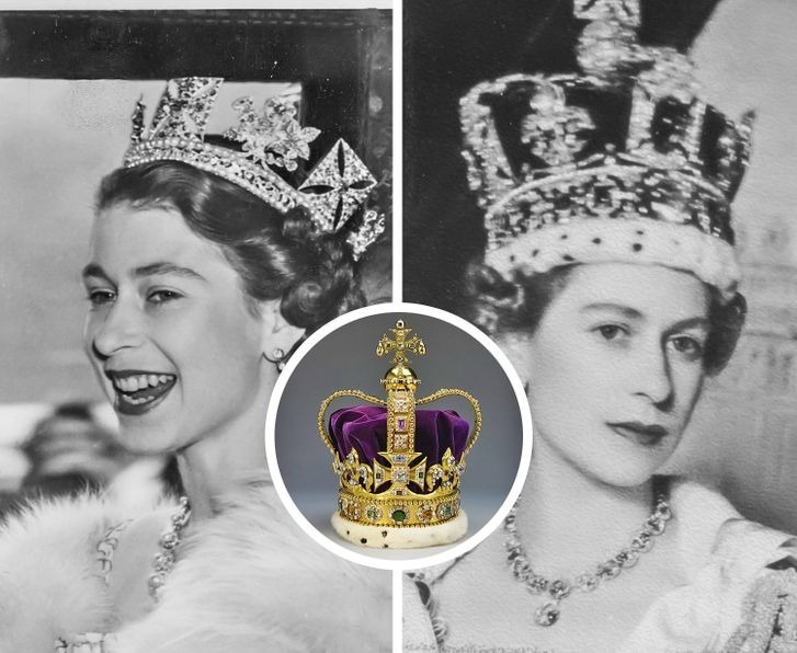 Trong ngày đăng quang, Nữ hoàng Anh đã thay đến 3 chiếc vương miện. Trên đường đến buổi lễ, bà đội Vương miện George IV State Diadem. Tại buổi lễ bà dùng vương miện St. Edward và khi trở lại điện Buckingham bà mới đội Vương miện Imperial State.