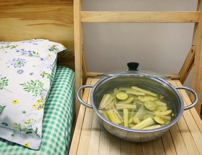 Chị T. thường nấu một nồi nước chanh, gừng, xả cho chồng xông mũi, đồng thời sát khuẩn, thơm nhà. Ảnh: NVCC.