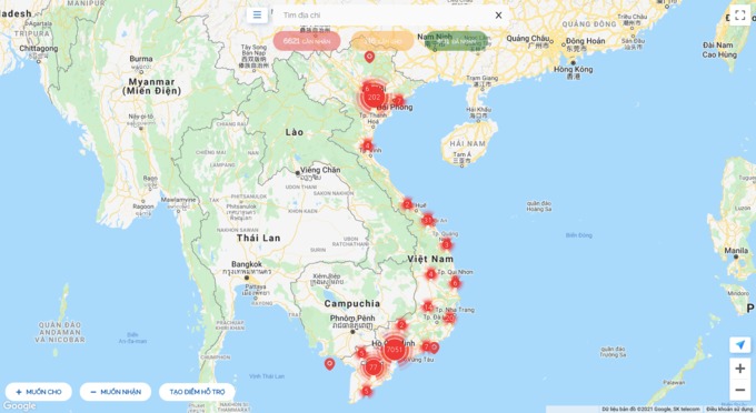 Bản đồ SOSmap có tên miền sosmap.net, được xây dựng dựa trên dữ liệu bản đồ Google Maps bởi Xtek - một công ty có trụ sở tại TP HCM. Sau 10 ngày triển khai, SOSmap đã ghi nhận hơn 1.300 lượt đăng ký nhận, gần 100 lượt đăng ký cho. Hàng trăm người đã nhận được nhu yếu phẩm qua hệ thống này.