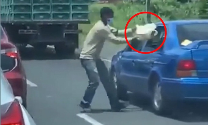 Con gà 'tránh vỏ dưa gặp vỏ dừa' khi cố nhảy khỏi xe tải nhưng lại vô tình trở thành mồi ngon của tài xế ôtô. Con gà mái khá nhanh trí bay khỏi nóc xe tải nhưng thật đáng tiếc...