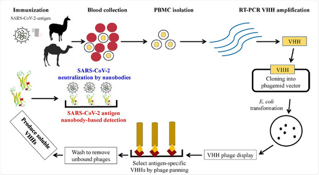 Họ tiêm protein gai của virus SARS-CoV-2 vào 3 con lạc đà alpaca. Protein gai này kích thích cơ thể chúng sản sinh kháng thể giống với một loại vắc-xin. Máu của những con lạc đà sau đó được nhóm nghiên cứu trích xuất, chứa khoảng 1 tỷ kháng thể nano.