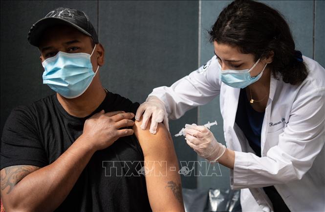 Nhân viên y tế tiêm vaccine COVID-19 cho người dân tại New York, Mỹ. Ảnh: AFP/TTXVN