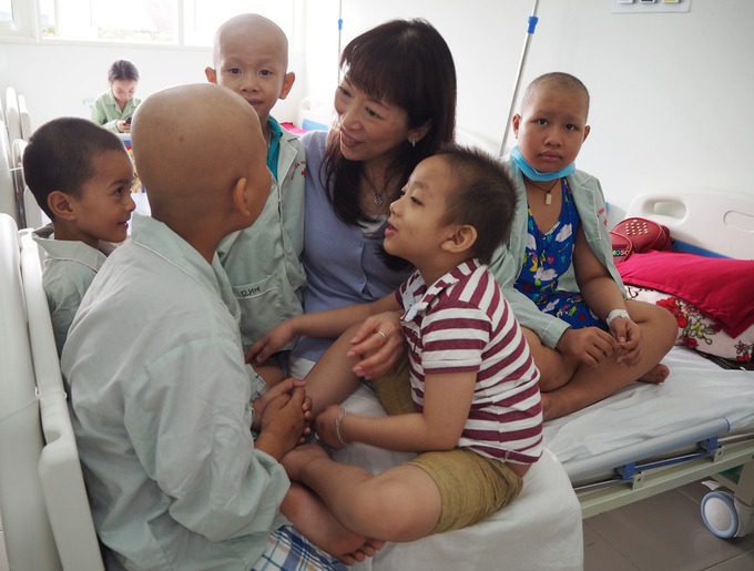 Tất cả bệnh nhi ung thư tại Bệnh viện Trung ương Huế và cha mẹ của các em luôn gọi chị Watanabe là "Mẹ". Ảnh: Kazuyo Watanabe.