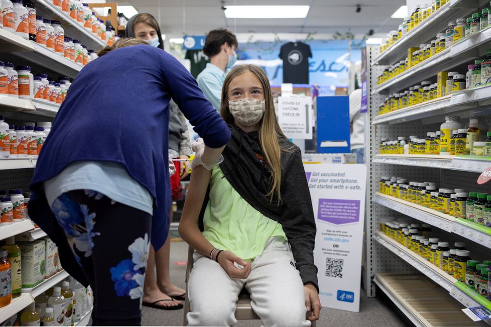 Abby Oplinger, 13 tuổi, được tiêm vaccine Covid-19 sau khi bang Pennsylvania cho phép tiêm vaccine cho người trên 12 tuổi.