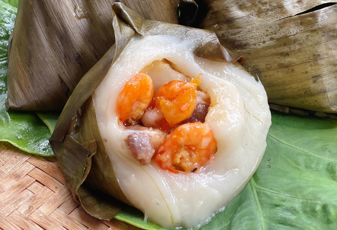 Bánh nếp nhân tôm thịt hấp có lớp vỏ bánh nếp mềm dẻo, bao lấy nhân tôm thịt đậm đà và hạt tiêu thơm lừng.