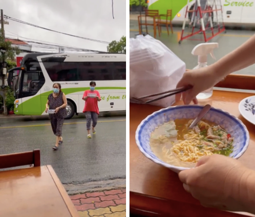 "Cảm ơn lắm 2 cô và bà ạ. Mình trực chốt theo chỉ thị 16 cho địa phương. Mưa gió nên lạnh và run đói. Hai cô này nhà ở đối diện, thấy tụi mình như vậy nên mới pha mì cho mình ăn đó ạ" - chàng trai chia sẻ.