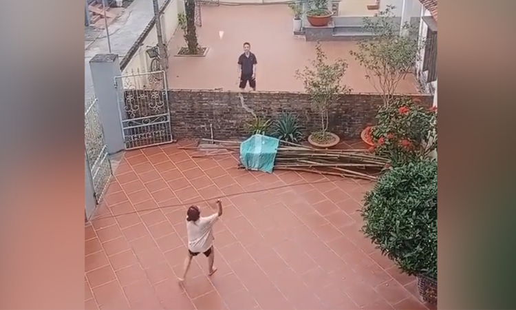 Chơi cầu lông cùng cô hàng xóm mùa dịch thật sáng tạo. Khi mà ở nhà quá chán, muốn thể thao mà lại không vi phạm quy định giãn cách thì đã có cách này.