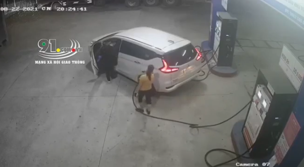 Lợi dụng lúc nhân viên quay lưng đi cất vòi bơm, đối tượng nhanh chóng leo lên xe, đóng chặt cửa rồi nhấn ga tẩu thoát.