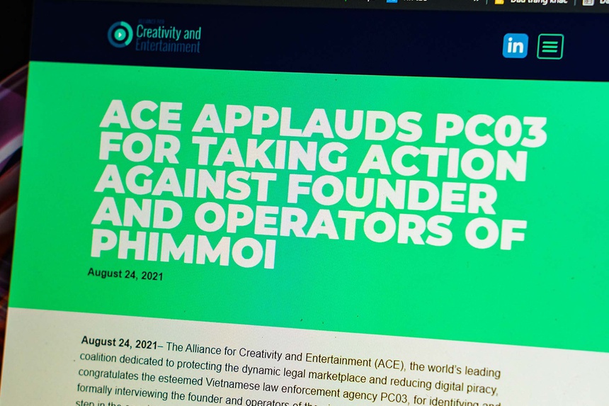 Liên minh Sáng tạo và Giải trí (The Alliance for Creativity and Entertainment- ACE), đăng bài chúc mừng cơ quan thực thi pháp luật Việt Nam, sau khi người đứng đầu trang web phim lậu phimmoi.net bị khởi tố. Đây là tổ chức lớn nhất thế giới hoạt động trong lĩnh vực bảo vệ thị trường bản quyền kỹ thuật số.