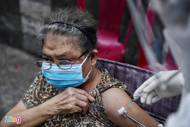 Nhân viên y tế tiêm lưu động tại nhà cho người dân trong thời gian tăng cường giãn cách. Ảnh: Phạm Ngôn.
