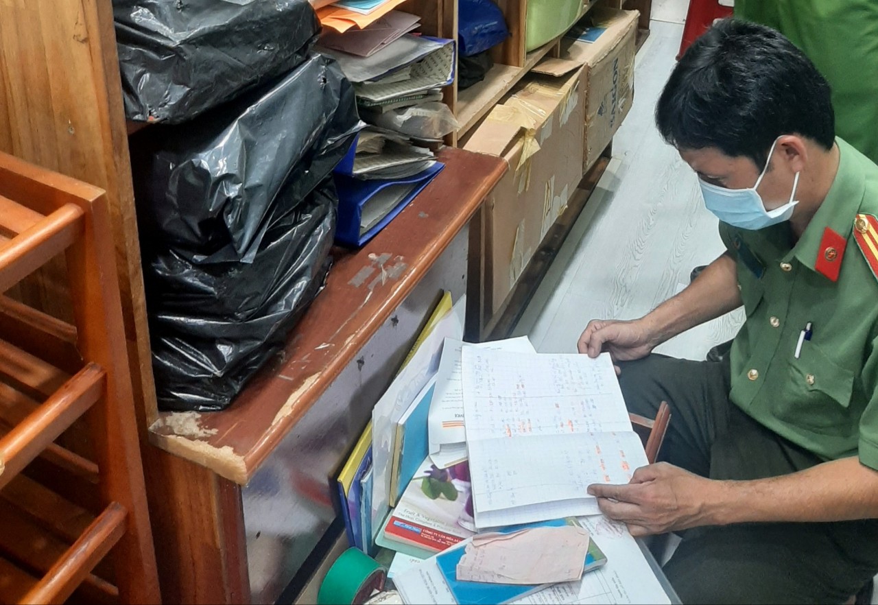 Khám xét nhà và tiệm vàng do bị can Trần Thị Thảo Trang làm chủ, cơ quan điều tra thu giữ một số tang vật và giấy tờ có liên quan đến vụ án. Ảnh: CACC